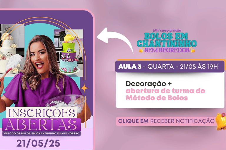 Técnicas de decorações com Chantininho e Abertura de vagas do Método de Bolos em Chantininho